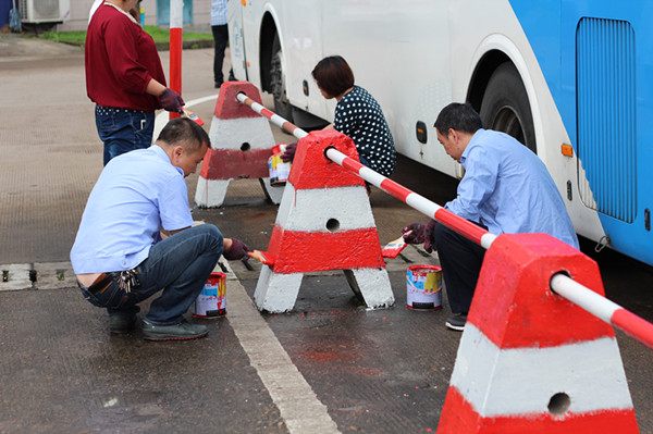 為響應(yīng)總公司“開(kāi)源節(jié)流,挖潛增效”的號(hào)召,也為配合客運(yùn)東站的“安全生產(chǎn)月”活動(dòng),發(fā)揚(yáng)“自己動(dòng)手,豐衣足食”的勞動(dòng)精神,在東站黨支部委員金旭陽(yáng)的倡導(dǎo)下,東站的黨員、團(tuán)員、入黨積極分子及普通員工在6月5日上午早早地來(lái)到東站,進(jìn)行第二波自己動(dòng)手挖潛增效活動(dòng),利用自己的休息時(shí)間對(duì)東站年久褪色的隔離墩進(jìn)行油漆刷新。