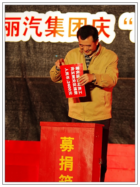 演唱會上,麗汽集團員工為玉樹地震災區(qū)進行了捐款,所募集的21981元善款轉(zhuǎn)交市慈善總會。