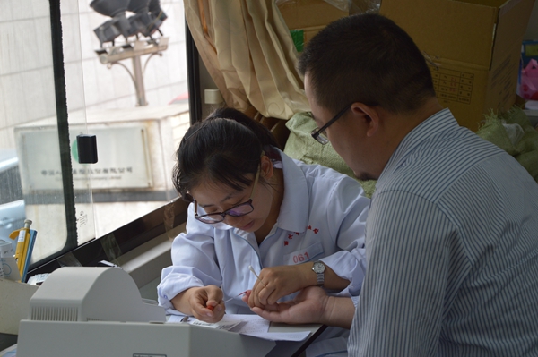 麗汽集團(tuán)董事長(zhǎng)、黨委書(shū)記葉茂在驗(yàn)血